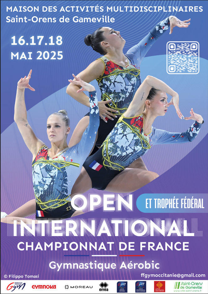 Le Comité Régional Occitanie de Gymnastique organise le Championnat de France, Trophée Fédéral & Open International de Gymnastique Aérobic du 16 au 18 mai 2025 à la Maison des Activités Multidisciplinaires de St Orens de Gameville,
